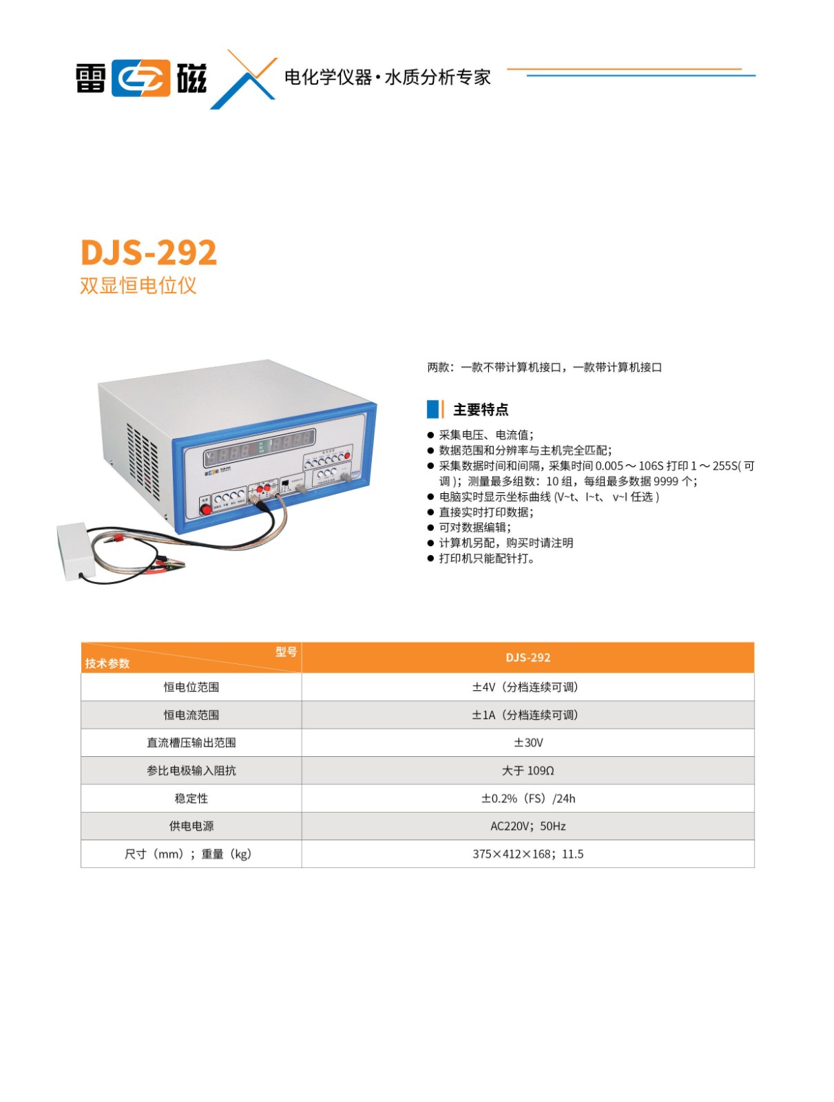 - 厂家货号: 76041 平台货号: HD201804203 商品代码: 109060501 品 牌: 雷磁 型号: DJS-292