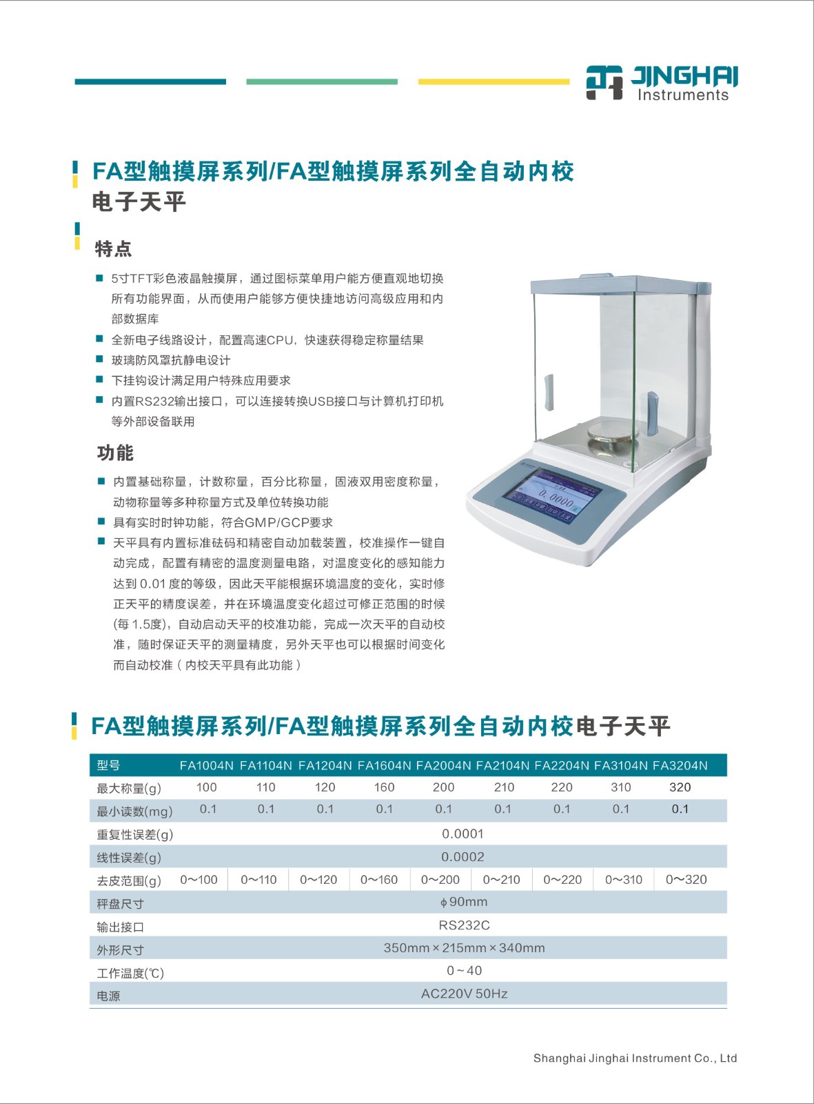 上海菁海电子分析天平FA2104N(内校)
