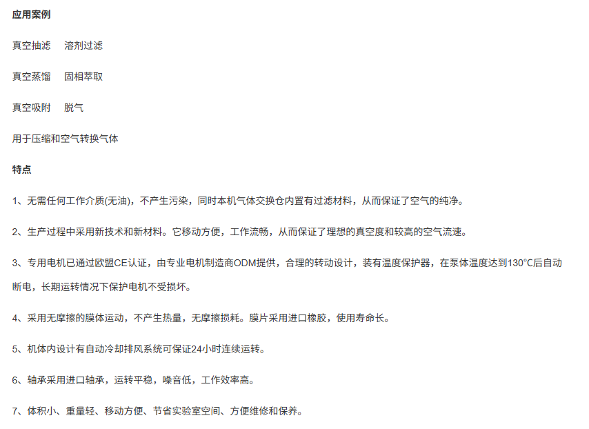 | 关键字 | 抽气速度:20L/Min 极限真空度:200mbar 额定功率:160W 泵头:1 |