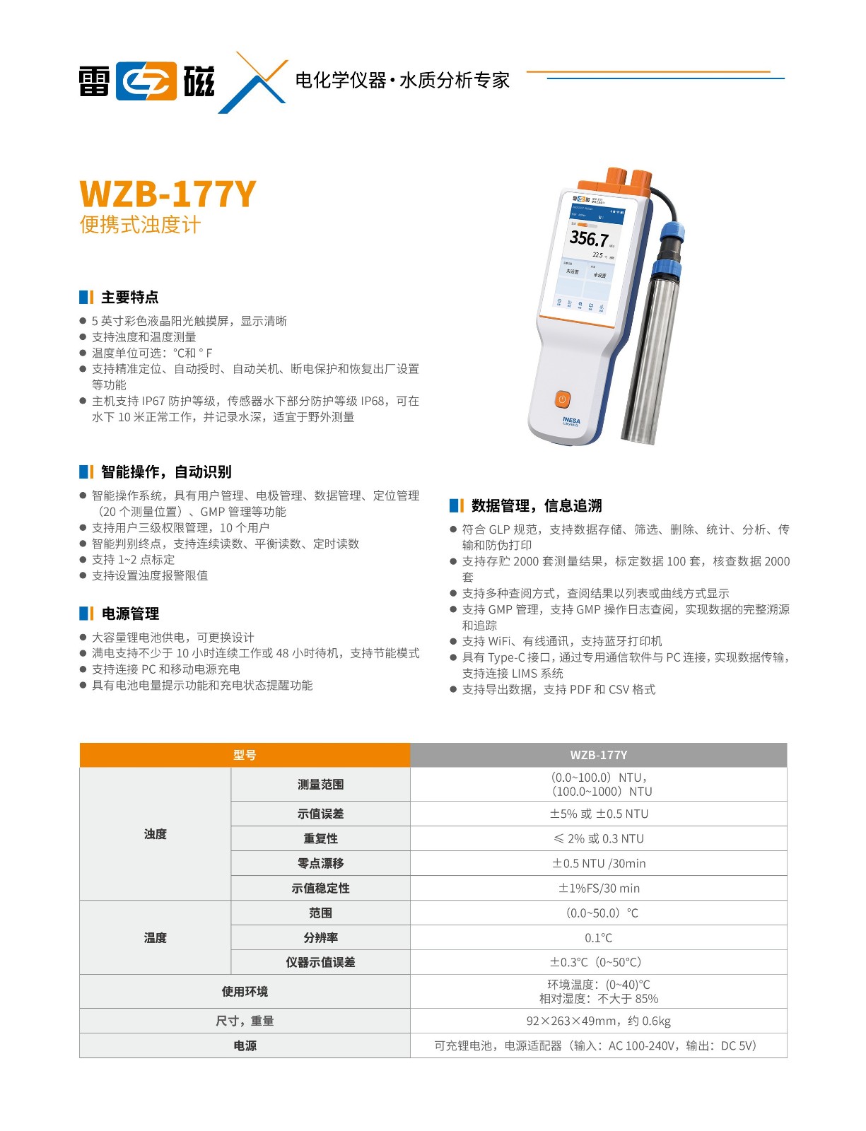 - 商品名称:上海雷磁便携式浊度计 WZB-177Y