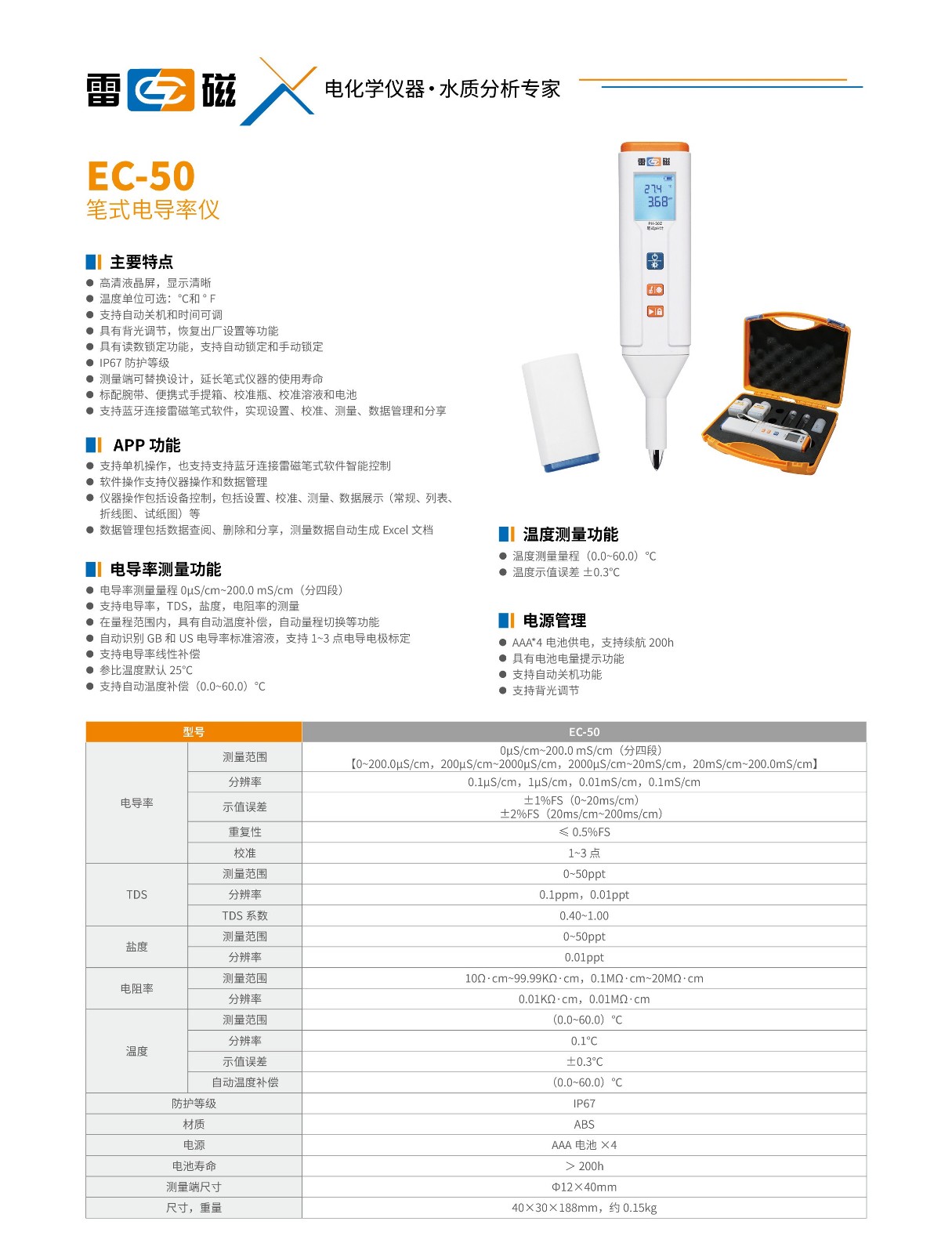 - 商品名称:上海雷磁笔式电导率仪EC-50