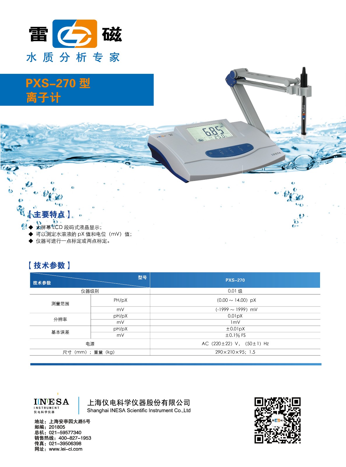 范围:0.00~14.00pX,精度:±0.01pX;(-1999~1999)mV