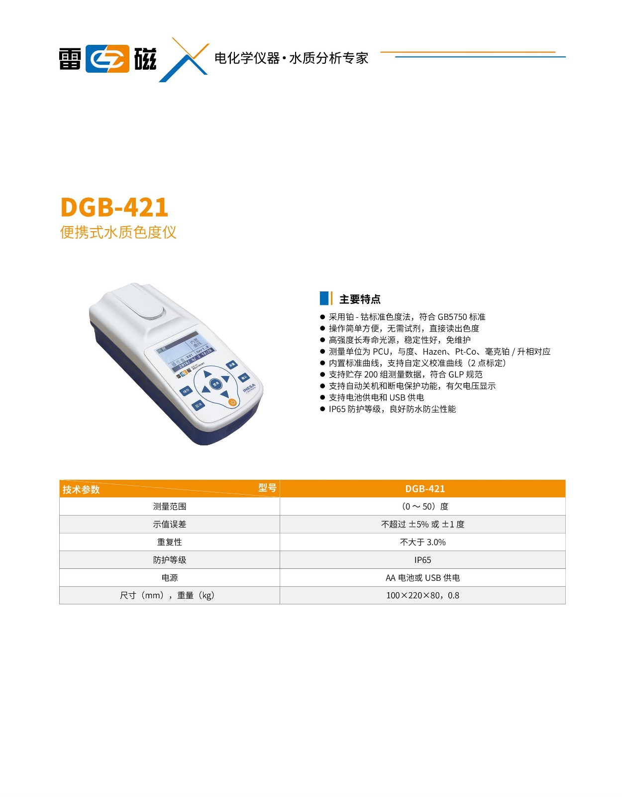 • 关 键  字: 氨氮: (0.000-4.000)mg/L,可 扩展至 300mg/L 精度:±10%; 低浓度 COD: (0.0-150.0)mg/L, 精度:±8%; 高浓度: COD(150-1500)mg/L, 精度:±8%; 总磷: (0.000-1.000)mg/L,可 拓展至 25.00mg/L 精度:±10%; 总氮: (0.000-30.00)mg/L,可 扩展至 300mg/L