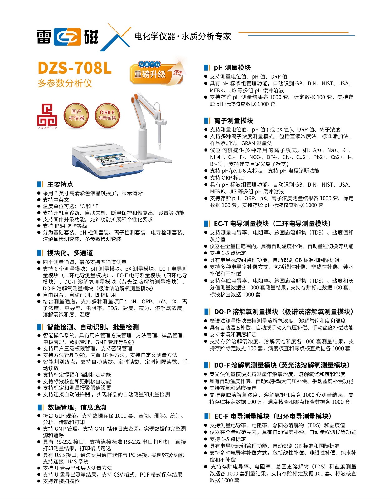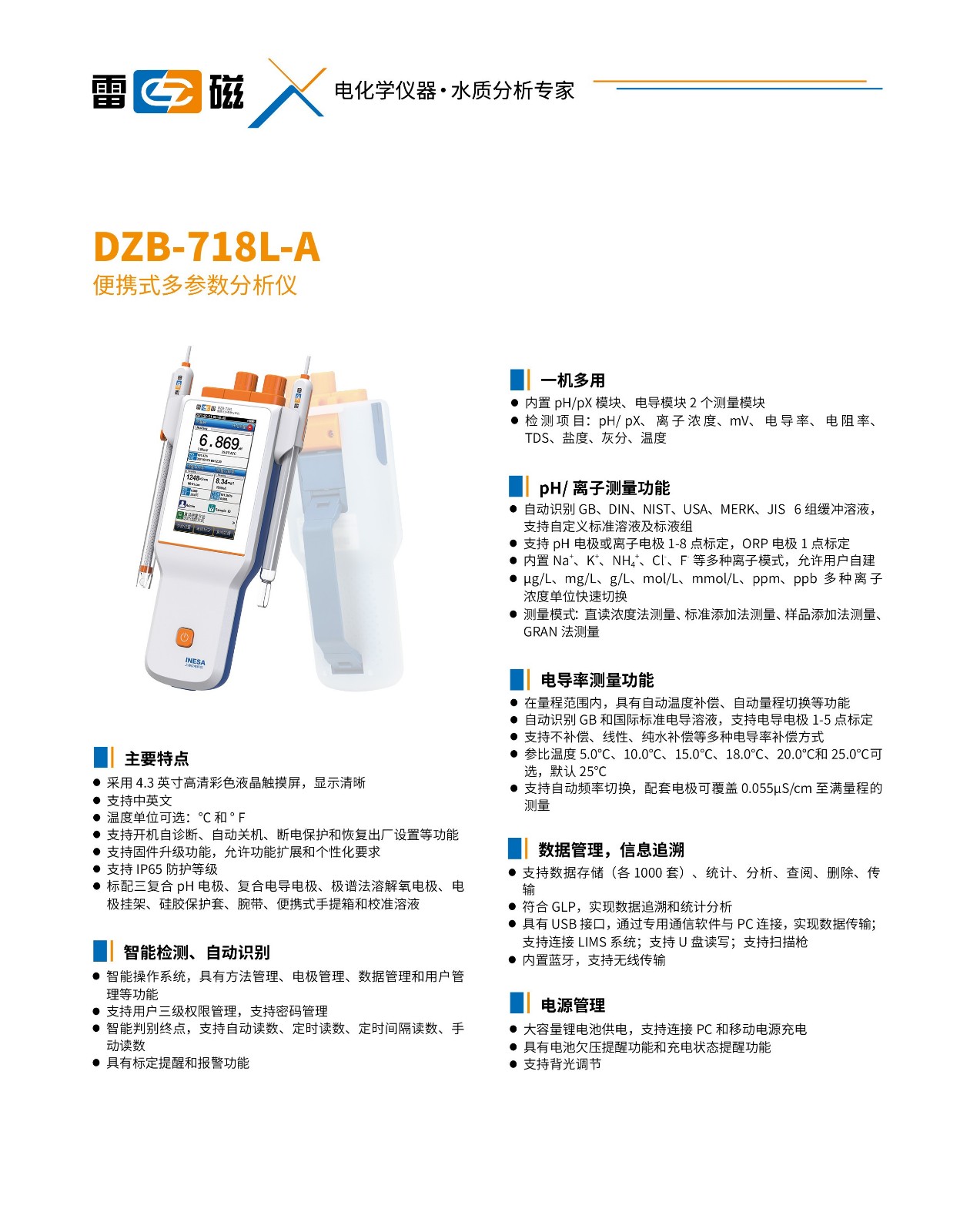 • 关 键  字: 【DZB-718A型多参数分析仪】(pH/pX、电导率) DZB-718A主机、DJS-1DF型铂黑电极、E-201-CF型pH复合电极、T-818-B-4F型温度传感器、pH标准粉剂